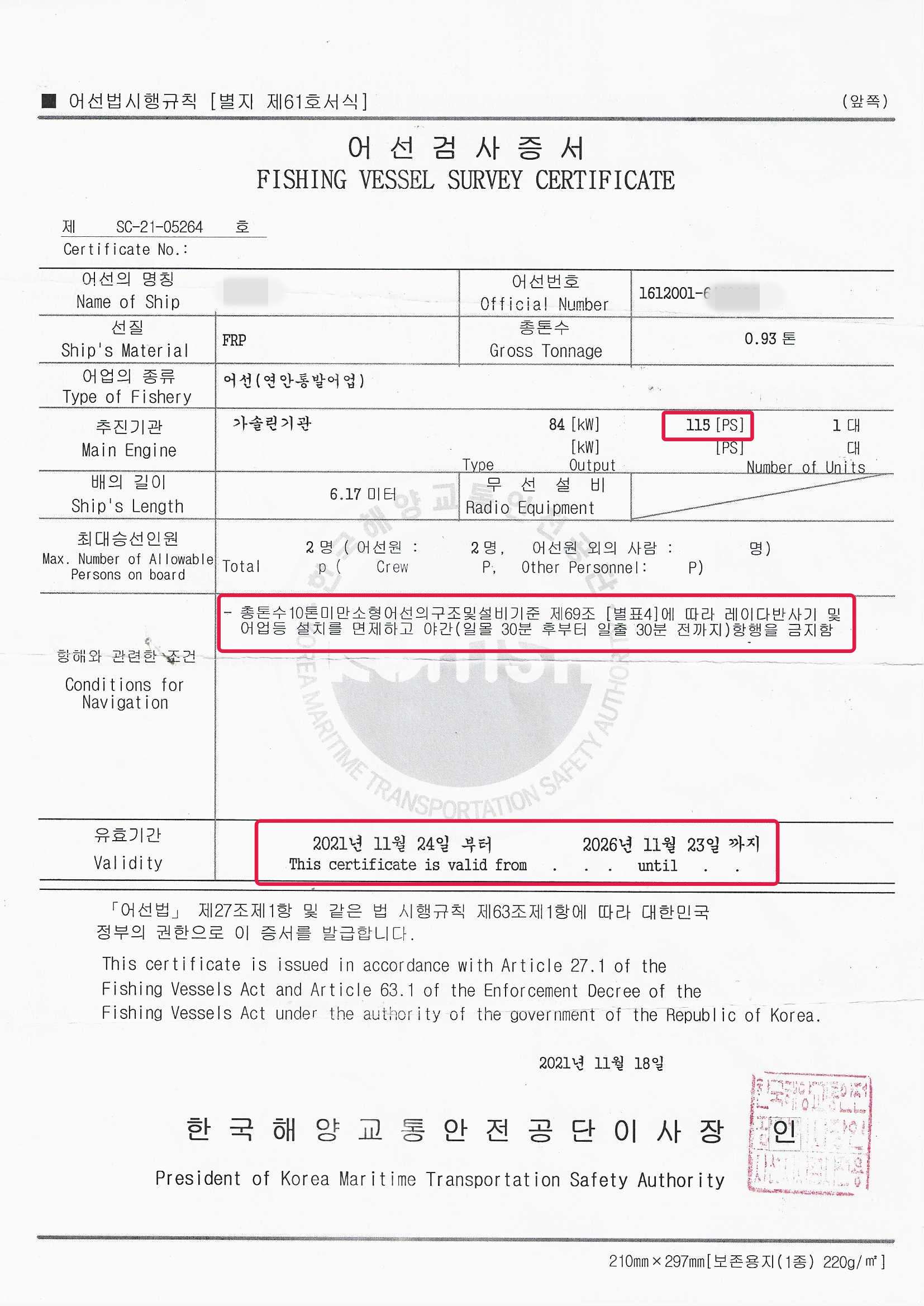 0.93톤 연안어선