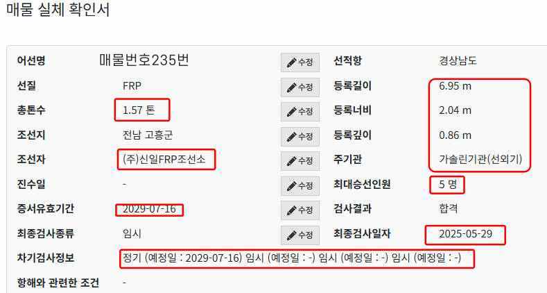 판매선박 상세정보