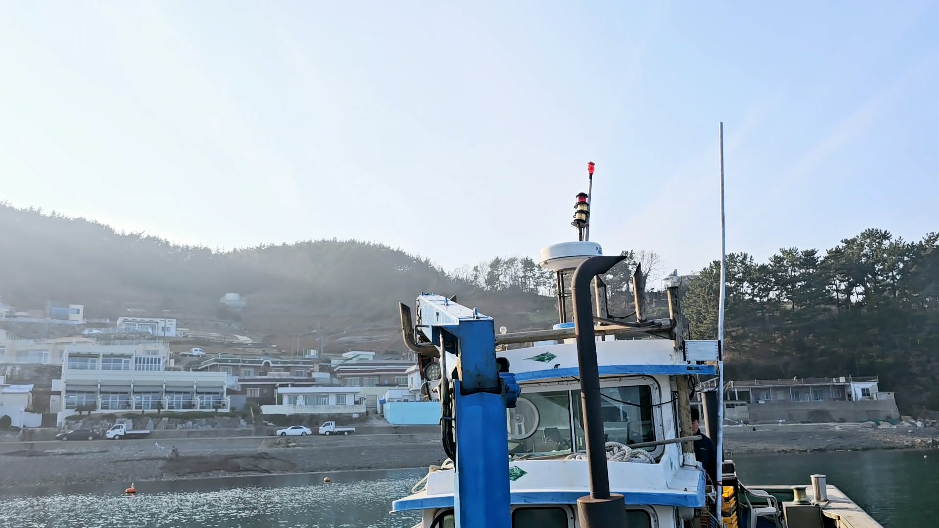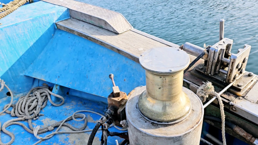 정치망 어장 하기 딱좋게 돈들여서 크레인과 그물 정지 시키는 장치